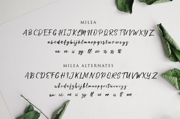 Milea is perfect for signature, branding, wedding, fashion, photography title, poster, social media, ad banner, book cover, packaging, handwritten quotes, greeting cards and advertising. With 2 fonts you can create more easily with alternatives to each letter and make it as if you wrote it yourself.